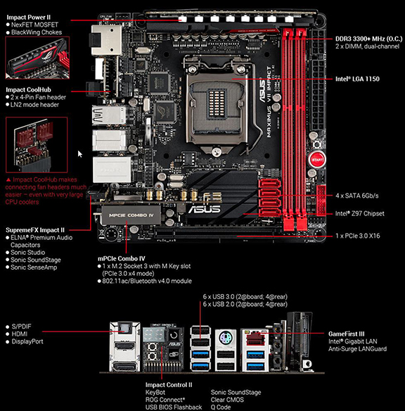 Går du og leger med tanken om at bygge et monster af en gaming PC, der ikke må fylde alverden, fordi du gerne vil slæbe den med rundt i landet til LAN parties, så har ASUS muligvis lagt fundamentet med dette mini-ITX bundkort, der stammer fra deres ROG (Republic of Gamers) serie. Kortet lyder navnet Maximus VII Impact, og det er baseret på Z97 chipsettet. ASUS har forsøgt at skovle alle tænkelige highend komponenter, som vi ser det på de større ATX bundkort, og hvis jeg selv skal sige det, er de faktisk kommet rigtig godt af sted med det.