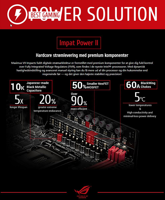 Udstyret med højkvalitets komponenter og ekstra sikring mod statisk elektricitet og overspænding er Maximus VII Impact et særdeles standhaftigt kort, der virkelig kan præstere.