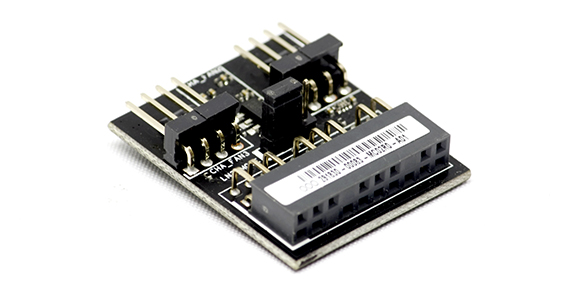 En fan_hub finder vi da også i kassen, og her kan vi tilslutte blæsere til for eksempel en stor CPU køler, hvor pladsen måske er trang.