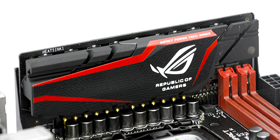 Strømstyringen er rejst op på et separat print med en virkelig fed ASUS ROG heatsink monteret, der nok skal hjælpe med at holde faserne afkølet.