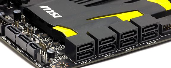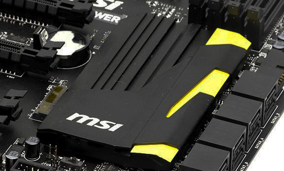 Vi finder på MPower en 12-faset mosFET strømstyring med en stor og flot heatsink over. Til at fodre CPU'en har vi en standard 8-pins ATX tilslutning med mulighed for yderligere tilslutning af et 4-pins stik, hvis man vil ud i nogle meget heftige overclocking scenarier. Chipsettet er kølet af en stor heatsink med et design meget lignende det, vi fandt på strømstyringen.