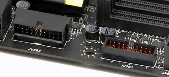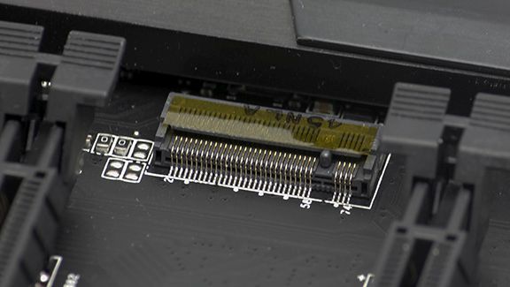 Af forbindelsesmuligheder finder vi først og fremmest to USB3.0 porte, hvoraf den ene er vinklet 90 grader. Dernæst har vi otte SATA3 porte ved siden af chipsettet samt to SATA3 porte under chipsettet, der også kan fungere som SATA Express port. Desuden har vi også en Turbo M.2 port, der kommer med en båndbredde på hele 32 Gbps.