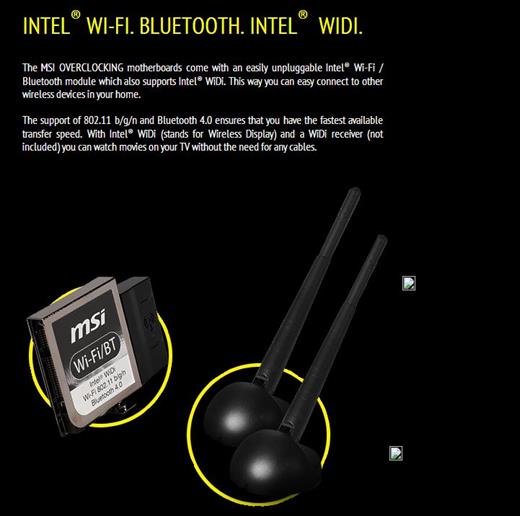 MSI har allieret sig godt tog grundigt med Intel, og det har mundet ud i, at bundkortet kommer med et rigtig lækkert modul. Du får Intel WiFi, Bluetooth samt Intel WiDi, og sidstnævnte er en rigtig lækker detalje, da den giver dig mulighed for, trådløst, at dele hvad der sker på computerskærmen, på fjernsynet.