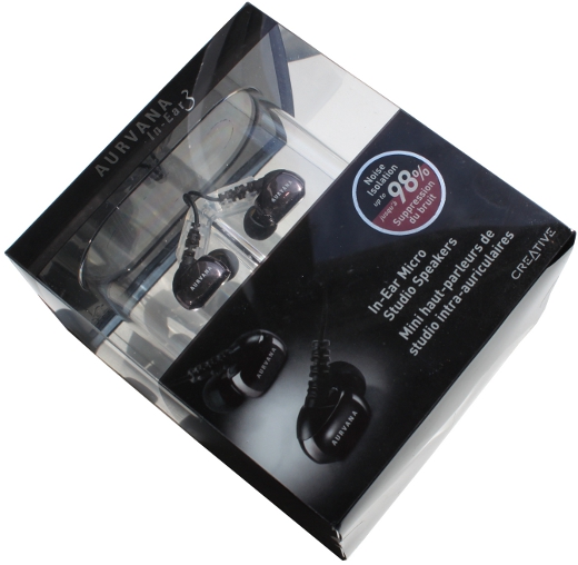 I dag skal vi kigge på et af deres nyeste skud på stammen hvad angår In-Ear hovedtelefoner. Denne type hovedtelefoner er dem man stopper helt ind i ørene lige som man gør med for eksempel ørepropper. Disse lukker alt lyd udefra ude, og kan typisk gengive en bedre og dybere bass end normale hovedtelefoner. Navnet er Aurvana In-Ear 3, hvor 3-tallet betyder tredje version af Creative´s Aurvana In-Ear hovedtelefoner. Af features kan vi nævne separate højttalerenheder inde i hver hovedtelefon, aluminiums stik, knald frækt design og meget mere. Men alt dette får man ikke bare sådan lige. Creative Aurvana In-Ear 3 hører nemlig til i den tunge ende med en pris på 999,- kroner. Er du ikke blevet skræmt af denne pris, så smut med nu når vi tager et kig på indpakningen.