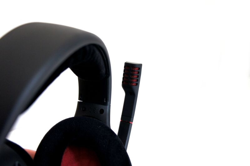 Som tidligere nævnt, aktiverer man mikrofonen, ved at skubbe den ned foran ansigtet. Når man skubber den op igen, bliver den automatisk slukket. G4ME One mikrofonen har støjreduktion, og er i enden af en stor boom arm, som kører det samme farvetema som resten af headsettet. I brug, er mikrofonen præcis som man forventer det af et Sennheiser headset, det vil sige at man går klart igennem, uden baggrundsstøj, og der er ingen forvrængninger, som man nogle gange hører det ved billigere headsets.