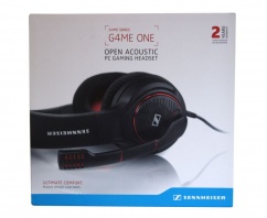 Vi starter med en unboxing af headsettet. Vi har en klassisk Sennheiser indpakning, der er stilren, og følger et meget simpelt design, med et billede af G4ME One på forsiden, og de tekniske detaljer på bagsiden, på flere sprog. Hovedtelefonerne er forsvarligt pakket ind, i plastik med beskyttelsesskum, for at holde dem på plads i kassen.