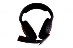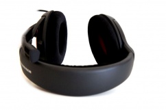 Headsettet vi tester i dag er i sort, men det kan også fås i hvid. Ud over den sorte farve, er den akkompagneret af sort plysfløjl omkring ørekopperne, samt en hovedbøjle der er betrukket med rødt stof over delen med memoryfoam. Rammen er i sort plastik, der bliver brudt af røde elementer. Selve rammen føles solid, og man behøver ikke at være nervøs for kvaliteten, selv hvis man har et kæmpe stort hoved.