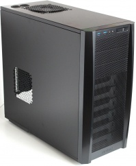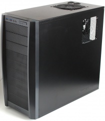 Med introduktionen og de kolde facts på plads kan vi nu tage det første kig på selve kabinettet. Nedenfor starter vi ud med to billeder fra hver side af kabinettet. Vi kan se, at det på begge sider er muligt at montere en 120 mm blæser.