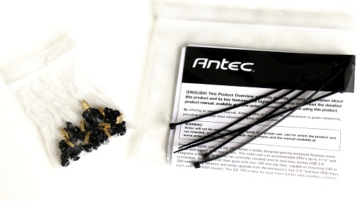 Af tilbehør til GX700 finder vi en pose med skruer, og en med manual og strips.