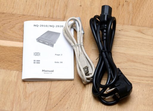 Af tilbehør til NorthQ NQ-2920 USB/S-ATA HD kabinettet får man en manual, der både er på Dansk og på Engelsk. Samtidig er der et USB kabel og et 230V strømkabel der begge skal benyttes for at tilslutte kabinettet.