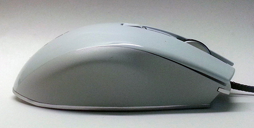 Kigger du på højre side af musen, finder du absolut intet. Dog skal det nævnes, at overfladen her er nubret, og altså derfor sikre et rigtigt godt greb på musen, selv i situationer, hvor du sveder om hånden.