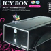 Når man står med kassen i hånden får man et indtryk af at der er en ret stor enhed indeni, men faktisk er IcyBoxen ikke særligt stor. Da Raidsonic er et tysk firma, der er bosat i Hamburg, er halvdelen af teksten på forsiden af kassen på tysk.