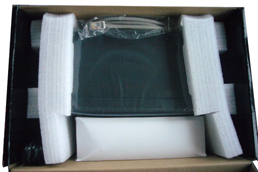 Sådan ser det ud når man åbner kassen, og straks får man forklaringen på hvorfor Raidsonic har valgt en så stor kasse til en forholdsvis lille enhed, den er nemlig viklet ind i beskyttende gummi.