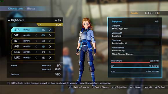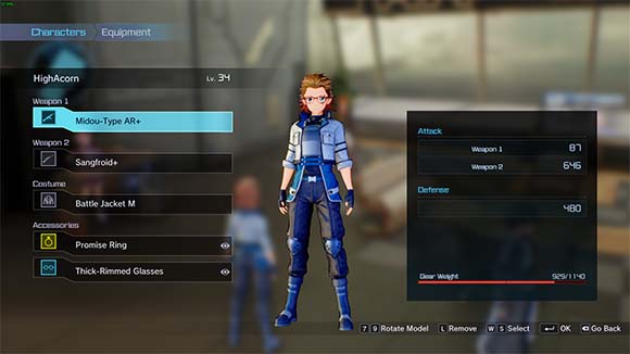 Selve interfacet hvor du vælger udstyr og våben er meget begrænset. Der er ikke samme muligheder som der er i andre RPG eller JRPG for den sags skyld. Du har 2 våben du kan skifte imellem til hver en tid, ude i verdenen. Sammen med det har du 2 items du kan vælge imellem som giver dig defensive stats. Til sidst har du et enkelt slot til en såkaldt “garderobe”, hvor du kan ændre tøjet på din karakter.