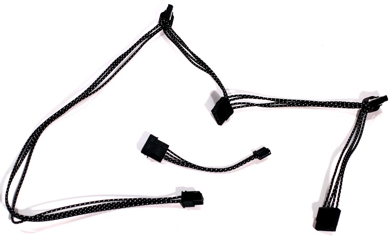Vi må heller ikke glemme Molex som stadig bruges den dag i dag, på trods af at have mange år på bagen efterhånden. Mange kabinetter med integrerede blæser kontrollere og lignende, benytter stadig Molex som strømkilde. Enermax inkluderer her et kabel med fire Molex stik på samme kabel, samt en Molex til Floppy adapter hvis du af en eller anden mystisk årsag stadig har behov for dette.
