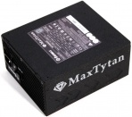 I bagenden finder vi som altid et stort område med ventilation, således at strømforsyningen kan komme af med den varme luft. Strømstikket til 230V er også her omme, og det samme er power knappen, men der er også endnu en knap markeret med D.F. switch. Vi kommer mere ind på hvad denne gør senere i vores test del. I mellemtiden kan i nyde billedet af den ene side, med MaxTytan navn og logo, som bidrager positivt til det overall design – jeg er fan!