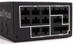 Inden i tager et kig under motorhjelmen, skal det modulære interface selvfølgelig også have et kig. Enermax har delt dette område op i fire med nogle hvide streger og lidt tekst, der beskriver hvor e forskellige kabler skal tilsluttes. Som på de fleste andre modulære strømforsyninger, er ingen af stikkene de samme hvilket med andre ord betyder at det ikke er muligt at tilslutte noget forkert.