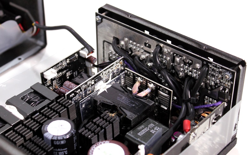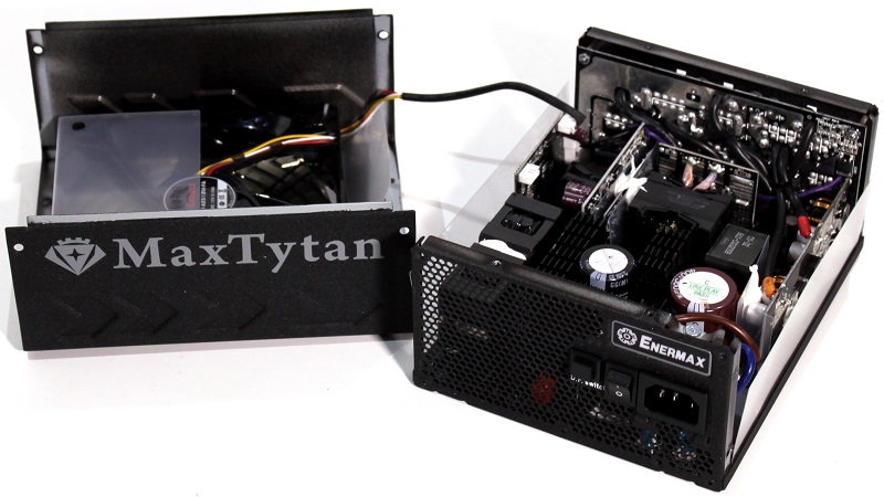 Når man skal vurdere om der er tale om en kvalitets strømforsyning med gode komponenter, er det altid en god ide at kigge på køleprofilerne. Størrelsen på disse giver altid en god indikation på om der er brugt billige komponenter, eller kvalitet. Dyre og gode komponenter generer mindre varme, hvilket betyder at der ikke er behov for så meget køling. Eftersom der kun er tre små køleprofiler inde i MaxTytan 800 watt, og at den er i stand til at køre helt uden blæser op til 55% belastning. Er der ingen tvivl om at der kun er brugt kvalitets dele i denne strømforsyning.