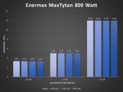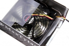 PG-signalet meldte som forventet også alt OK, og alt startede op som det skulle med lav forsinkelse. Støjniveauet på MaxTytan 800 Watt var også intet mindre end imponerende, da strømforsyningen var stort set lydløs lige meget hvilken belastning der var. Blæseren starter først op når der er over 55% belastning, hvilket altså betyder at du kan belaste med over 400 watt, før blæseren overhovedet starter op. Når den starter op, er den som sagt så støjsvag at du ikke bemærker det, og slet ikke når den først er monteret i et kabinet.