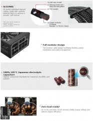 Efter en hurtig tur forbi Enermax’ hjemmeside var specifikationerne samt nogle features fundet frem. Nedenfor finder i først og fremmest specifikationerne listet op, efterfulgt af et par billeder der fortæller lidt om nogle af de features som MaxTytan 800 watt tilbyder: