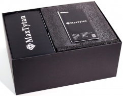 Med den hvide/røde yderskal fjernet, finder vi en sort kasse med MaxTytan navn og logo på toppen, samt Enermax logoer på siden. Der er virkelig gjort noget ud af unboxing oplevelsen, hvilket er lækkert at se nu da vi har med deres absolutte topserie at gøre. Med låget løftet af, finder vi en manual øverst. I venstre side er der en kasse med alt tilbehøret, mens at selve strømforsyningen ligger i højre i noget tykt skum for at sikre den mod stød under fragten.