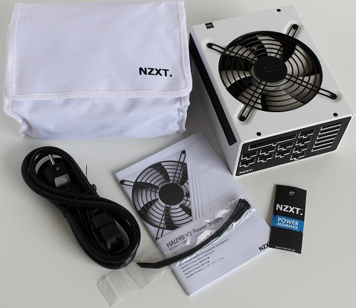 Lad os tage et kig ned i kassen og se hvad vi finder. Åbnes kassen finder vi til højre PSU´en pakket sikkert ind, samt alle de modulære kabler i en hvid taske på venstre side.